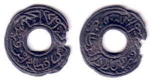 عملات من سلطنة فطاني صـُكت في 1309 هـ (1891 م) مكتوب عليها 'المتصرف بلد الفطاني سنة 1309'