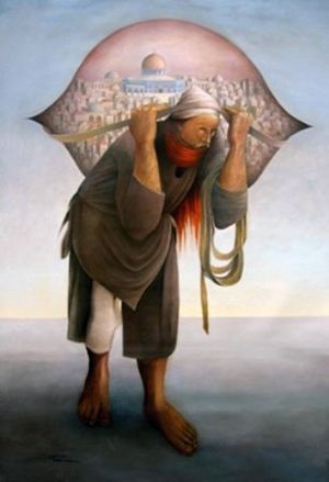 أشهر أعمال سليمان منصور. أُعجِب بها الزعيم الليبي معمر القذافي، فاشتراها، لكنها ضاعت في أحداث الحرب الليبية. فرسم منصور نسخ أخرى منها، بيعت أحدها في دبي بمبلغ 250,000 دولار.
