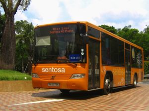 Sentosa Beach Tram is a free-to-ride tram that serves Palawan Beach, Siloso Beach, and Tanjong Beach, using four vehicles including 2 Volvo B12BLEAs, in which the second carriage is an open-top and another one with green and blue liveries. The Volvo B12BLEAs were manufactured by ComfortDelGro Engineering bodywork, which has since been taken out of service. The connection is at Beach Station Bus Terminal, beside Beach Station.