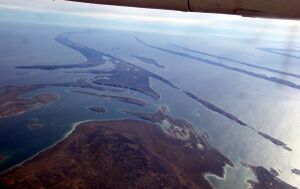 - ^ The term was coined around 1900 by William Morris Davis who described it as follows: Given sufficient time for the action of denuding forces on a mass of land standing fixed with reference to a constant base-level, and it must be worn down so low and so smooth, that it would fully deserve the name of a plain. But it is very unusual for a mass of land to maintain a fixed position as long as is here assumed.... I have therefore elsewhere suggested that an old region, nearly base-levelled, should be called an almost-plain; that is a peneplain.[1][2]