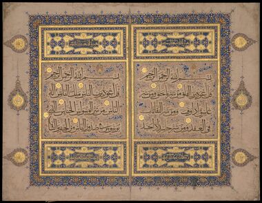 Closing pages from a Mamluk Qur'an with chapter 113 and 114 in muhaqqaq script. Cairo, c. 1360-1380. Chester Beatty Library