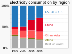 By 2025, Asia is projected to account for half of the world’s electricity consumption, with one-third of global electricity to be consumed in China.[42]