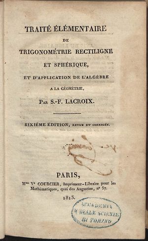 - "Traité du calcul différentiel et du calcul intégral", Chez Courcier, Paris, 1797-1798. (Revised in 1802 to a shortened version for classroom use. The shortened version was published in nine editions between 1802 and 1881.)