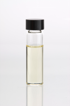 Dill (Anethum graveolens) essential oil in clear glass vial