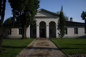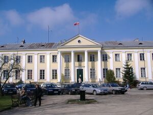 During the invasion of Poland, Germany bombed Polish civilian refugees on the road from Warsaw to Siedlce,[5] and the city was captured and then occupied by Germany until 1944. The Polish government evacuated the Polish gold reserve, part of which was stored in Siedlce, to Polish-allied France.[6] In mid-September 1939, the German Einsatzgruppe V entered the city to commit atrocities against Poles.[7] Siedlce was included within the Warsaw District of the General Government (German-occupied central Poland).[8] During the war, the area of Siedlce was home to a large partisan force of the Home Army and other underground organizations, such as Armia Ludowa. Due to German terror, the town lost one-third of its population, including its entire Jewish community deported to extermination camps during the Holocaust. In late July 1944 (see Operation Tempest), Home Army units freed the town, together with the Red Army. After the war, 50% of Siedlce was in ruins, including the town hall.