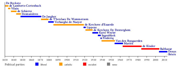 Jan BriersAndré DenysHerman BalthazarRoger de KinderAlbert MariënMaurice Van den BoogaerdeLouis FrederiqJules IngenbleekKarel WeylerAndré de Kerchove de DenterghemMaurice Lippens (governor)Raymond de Kerchove d'ExaerdeLéon Verhaeghe de NaeyerEmile de T'Serclaes De WommersomEdouard De JaegherLeander DesmaisièresLouis de SchierveCharles Vilain XIVWerner de Lamberts-CortenbachPierre De Ryckere
