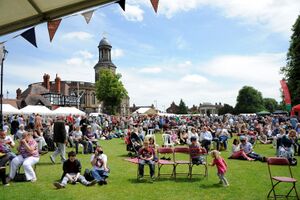 In 1581, Sir Henry Sidney, celebrated the feast of St George, on April 23, in this town, with great splendour: a solemn procession went from the Council House to St Chad’s Church, the choir of which was fitted up in imitation of St George's Chapel, Windsor Castle with the stalls decorated with the arms of the Knights of the Garter; on the conclusion of divine service Sir Henry devoted the afternoon to feasting the burgesses.[30]