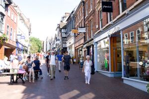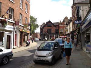 Shrewsbury thrived throughout the 16th and 17th centuries, a period when the town was at the height of its commercial importance. This success was largely due to the town's location, which allowed it to control the Welsh wool trade, a major industry at the time, with the rest of Britain and Europe, with the River Severn and Watling Street acting as trading routes.[69] This trade was dominated by the Shrewsbury Drapers Company for many years.[70] As a result, a number of grand edifices, including the Ireland's Mansion (built 1575) and Draper's Hall (1658), were constructed.