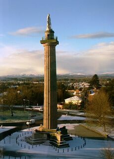 In 1403 the Battle of Shrewsbury was fought at Battlefield, a few miles north of the town centre, between King Henry IV and Henry Percy (Hotspur), with the king emerging victorious.[54] Hotspur's body was taken by Thomas Neville, to Whitchurch, for burial. However, when rumours circulated that Percy was still alive, the king "had the corpse exhumed and displayed it, propped upright between two millstones, in the market place at Shrewsbury".[55] That being done, Percy was subjected to posthumous execution.[56]
