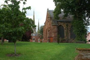 In the late 8th century, it is said that Offa took the town for the Mercians in 778,[28][أ] and he is associated by some sources with establishing the town's first church and dedicating it to St Chad.[30] If so, then there may have been an ecclesiastical foundation in the town within a century of the death of Chad of Mercia.[31]