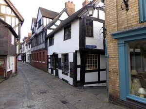 In 1485, ahead of the Battle of Bosworth Field, Henry Tudor, while not yet king, marched his forces on a route that lay through Shrewsbury. He was initially denied access to the town, but on intervention by a member of the Stanley family he was admitted.[58][59] Thomas Mytton, the Bailiff of the town, a supporter of Richard III, had vowed that the only way he would get through was "over his dead body". Thomas then lay down and allowed Henry to step over him, to free himself from his oath.[60] Henry was accommodated in the building now known as Henry Tudor House on Wyle Cop.[61]
