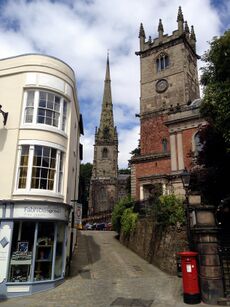 In the early 10th century, the relics of St Alkmund were translated to the town from Derby, this was probably the work of Æthelflæd.[37] (Later, after St Alkmund's Church became the property of Lilleshall Abbey in about 1145, the relics were retranslated back to Derby.)[38]
