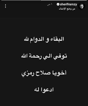 شريف رمزي يعلن وفاة شقيقه عبر حسابه الشخصي بموقع أنستجرام