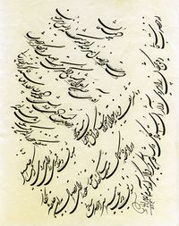 نمونهای از خط شکستهنستعلیق اثر محمدحسین عطارچیان به شیوه درویش عبدالمجید. متن نوشته: «هوالمستعان دوست ستودهخصال هنرمند ارجمند شکستهنویس زبده جناب آقای حسن اعرابی که مشتاق فراگیری مکتب اصیل و ماندگار حضرت استادی درویش عبدالمجید طالقانی میباشند و با تحریر دستخط زیبایی شیفتگی خود را به این مکتب عیان داشتهاند و با تشریففرمایی به تهران به همراه شاگردان و هنرجویان مستعد خود اشتیاق و علاقمندی را برای پیروی از مکتب اصیل ابراز نموده و با کمال مسرت شاگردان ممتاز خود را برای اتصال به این حلقه ماندگار تشویق و ترغیب مینمایند از حضرت سبحانی توفیق همگان را در پیروی از آثار آن استاد کل و اشاعه آن مکتب فراگیر آرزومندم محمدحسین عطارچیان ۵۶۴»