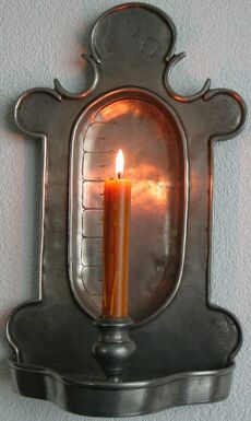 Many candle holders use a friction-tight socket to keep the candle upright. In this case, a candle that is slightly too wide will not fit in the holder, and a candle that is slightly too narrow will wobble. Candles that are too big can be trimmed to fit with a knife; candles that are too small can be fitted with aluminium foil. Traditionally, the candle and candle holders were made in the same place, so they were appropriately sized, but international trade has combined the modern candle with existing holders, which makes the ill-fitting candle more common. This friction-tight socket is only needed for the federals[مطلوب توضيح] and the tapers. For tea light candles, there is a variety of candle holders, including small glass holders and elaborate multi-candle stands. The same is true for votives. Wall sconces are available for tea light and votive candles. For pillar-type candles, the assortment of candle holders is broad. A fireproof plate, such as a glass plate or small mirror, can be a candle holder for a pillar-style candle. A pedestal of any kind, with the appropriate-sized fireproof top, is another option. A large glass bowl with a large flat bottom and tall mostly vertical curved sides is called a hurricane. The pillar-style candle is placed at the bottom center of the hurricane. A hurricane on a pedestal is sometimes sold as a unit.