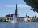 Schelfstadt and its baroque Schelf Church, Lake Schwerin in the back