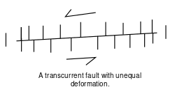 Faults in general are focused areas of deformation or strain, which are the response of built-up stresses in the form of compression, tension, or shear stress in rock at the surface or deep in the Earth's subsurface. Transform faults specifically accommodate lateral strain by transferring displacement between mid-ocean ridges or subduction zones. They also act as the plane of weakness, which may result in splitting in rift zones.[بحاجة لمصدر]