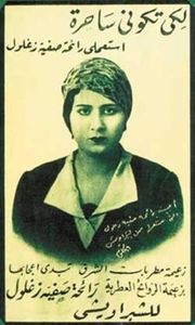 " صفية زغلول " أطلق عليها الجميع لقب "أم المصريين " وذلك لعطائها المتدفق من أجل قضية الوطن العربى والمصري خاصةً، حيث خرجت على رأس المظاهرات النسائية من أجل المطالبة بالاستقلال خلال ثورة 1919. وقد حملت لواء الثورة عقب نفى زوجها الزعيم سعد زغلول إلى جزيرة سيشل، وساهمت بشكل مباشر وفعال قي تحرير المرأة المصرية.