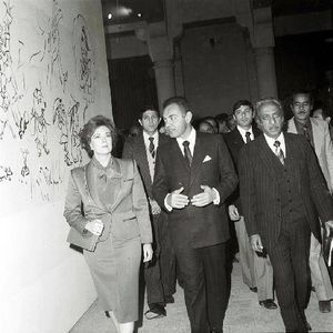 صلاح عبد الصبور في إفتتاح معرض القاهرة الدولي للكتاب بحضور السيدة جيهان السادات عام ١٩٨١.