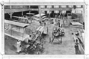 المصانع الأولى للطائرات مثل هذا المصنع الفرنسي (1908م) أنتجت عددًا محدودًا من الطائرات، وعلى نطاق ضيق يكاد يكون يدويًا تمامًا. وباندلاع الحرب العالمية الأولى (1914- 1918م) بدأ إنتاج الطائرات الحربية على نطاق واسع. وقد كانت الطائرات تُستخدم قبل الحرب للأغراض الرياضية بوجه خاص.