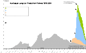 يصل إنتاج النفط في أذربيجان إلى حوالي 914,000 برميل نفط يوميا و1 بليون متر مكعب من الغاز ووصل معدل الإنتاج إلى أقصاه في 2008 حيث أنتجت 1.2 مليون برميل نفط يوميا في 2008. وتعتبر أذربيجان من أقدم أماكن صناعة النفط، ويتربط تاريخها بثرواتها من النفط. ومن المنتظر أن تسترد مكانتها كمنتج ومصدر للنفط مرة أخرى.