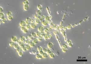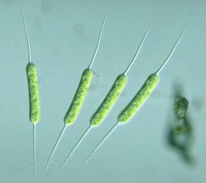 الخلايا السابحة من هذه الطحالب تكون مجهزة بسوطين.