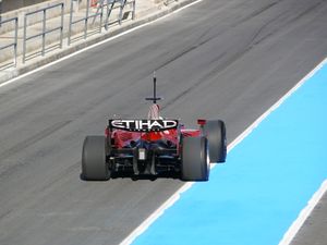 Etihad's logo on the rear wing of a Ferrari F1 car
