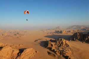 يستطيع الطيار التحكم في اتجاه الطيران وسرعته بواسطة الحبال الموصولة بالمظلة.