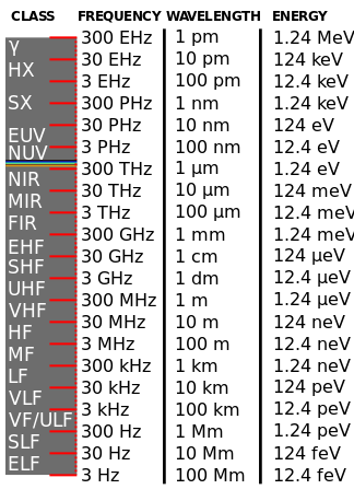 | EUV= Extreme ultraviolet | EHF= Extremely high freq. | VLF= Very low freq. |