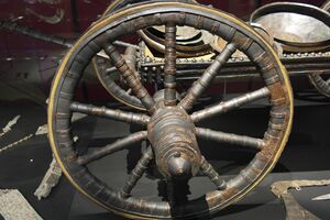 In the 1st millennium BCE an iron rim was introduced around the wooden wheels of chariots.