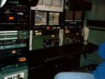 - 2. غرفة تحكم الصوت: ويجلس فيها مهندس الصوت أمام مازج الصوت لتحكم بكافة أعمال الصوت و يرافقه أحد مساعديه. وأمامه شاشات مراقبة للصورة حتى يتمكن من ضبط الصوت تبعا لما يراه على الشاشة.