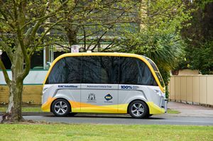 حافلة برية غير مأهولة على طريق في أستراليا الغربية، 2016.
