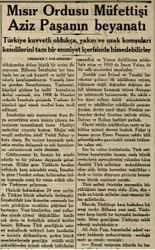 عزيز باشا المصري، مفتش الجيش المصري، أثناء زيارته لتركيا في 1938 يزور قادة الاتحاد والترقي الذين كانوا قد حكموا بالإعدام عليه وعلى رفاقه من العرب، أثناء الحرب الإيطالية التركية والحرب العالمية الأولى. وكان قد اتهم باختلاس أموال تبرعات العرب في ليبيا. ولم ينقذه إلا تدخل عضو الاتحاد والترقي، كاظم قرة بكر، لدى أنور باشا.
