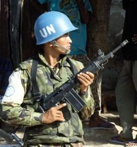 A member of the Nepalese Quick Reactionary Force (QRF) stands ready with a variant of the Galil assault rifle.