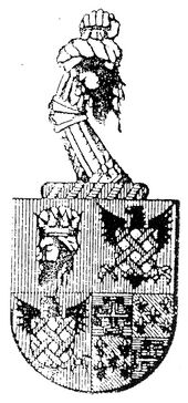 • ^ From the original Portuguese blazon: "De prata, cinco escudetes, de blau, postos em cruz, cada um carregado com cinco besantes, de prata, postos em aspa; bordadura, de gules, carregada com sete castelos, de ouro, dos quais três em chefe".[1]