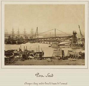 وفى عام 1861 بدأت الشركة إنشاء ميناء بورسعيد، وأقامت منارة وكوبرى، وقام الخديو بزيارة الميناء الذى حمل اسمه فى 12 أبريل 1861، وفى أواخر ذلك العام قام الخديو بزيارة مناطق الحفر بجوار بحيرة التمساح، واختار موقع المدينة التى اختير لها اسم «الإسماعيلية»، وزاد عدد العمال إلى 25 ألف عامل، وفى 12 نوفمبر أقام ديليسبس احتفالاً بمناسبة الانتهاء من حفر القناة البحرية المصغرة،