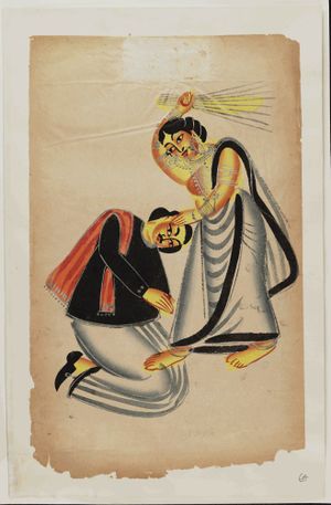 Kalighat Painting, "Woman Striking Man With Broom," Calcutta, India, 1875