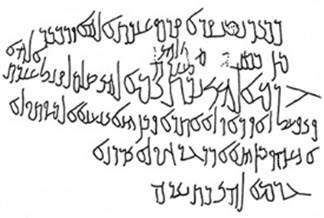 ذكير لمنقرا قدس عبدت الها وذكير []من [....................] جرم الهي بر تيم الهي صلم لقبل عبدت الها فيفعلو لا فدا ولا اثرا فكن هنا يبغنا الموتو لا ابغهو من هنا ادد جرحو لا يردنا جرم الهي كتب يده