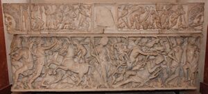 Roman culture introduced a new phase of anthropomorphized sculpture to the Gaulish community,[21] synthesized with Celtic traditions of refined metalworking, a rich body of urbane Gallo-Roman silver developed, which the upheavals of the 3rd and the 5th centuries motivated hiding away in hoards, which have protected some pieces of Gallo-Roman silver, from villas and temple sites, from the universal destruction of precious metalwork in circulation. The exhibition of Gallo-Roman silver highlighted specifically Gallo-Roman silver from the treasures found at Chaourse (Aisne), Mâcon (Saône et Loire), Graincourt-lès-Havrincourt (Pas de Calais), Notre-Dame d'Allençon (Maine-et-Loire) and Rethel (Ardennes, found in 1980).[22]