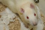 The albino laboratory rat with its red eyes and white fur is an iconic model organism for scientific research in a variety of fields.