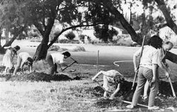 حفر خنادق في كيبوتس گان شموئيل قبل حرب 1967.