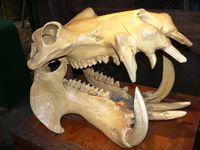 جمجمة فرس النهر. لاحظ الأنياب الضخمة التي تستخدمها الحيوانات للتقاتل.