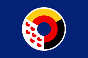 Although the Frisian regions have their own separate flags, Frisia as a whole has not historically had a flag of its own. A flag for a united Frisia, known as the Interfrisian Flag, was launched in September 2006 by the Groep fan Auwerk (English: Group of Aurich). This separatist group supports a united Frisia as a recognized country. The design was inspired by the Nordic Cross flag. The four pompeblêden (water lily leaves) represent the contemporary variety of the Frisian regions—North, South, West and East.[7]