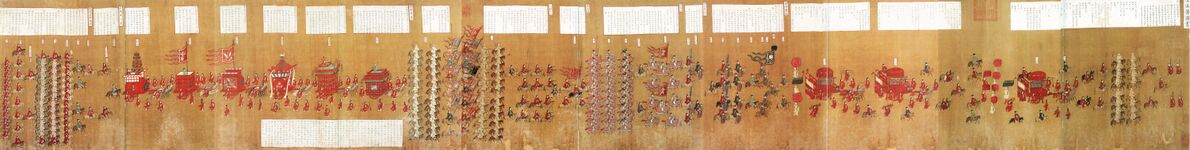 A section of an Eastern Han (25–220 AD) fresco of 9 chariots, 50 horses, and over 70 men, from a tomb in Luoyang, China