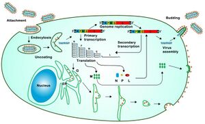 - Rose JK, Whitt MA (2001). "Rhabdoviridae: The viruses and their replication". In Knipe DM, Howley PM (eds.). Field's Virology. Vol. 1 (4th ed.). Philadelphia: Lippincott Williams & Wilkins. pp. 1221–44. ISBN 978-0781718325.