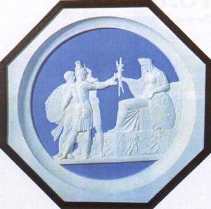 In his colored wax medallion People's militia of 1812 (1816), Tolstoy owes a debt to David's "Oath of the Horatii" and to the ceramics of Josiah Wedgwood.