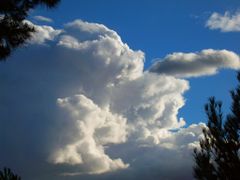 Cirrus with elements which take on a rounded appearance on the top, with the lower part appearing ragged.