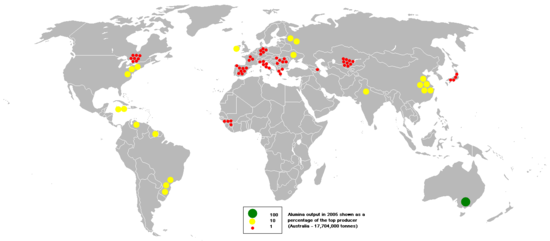 | Rank | Country/Region | Aluminium oxide production (tonnes) |