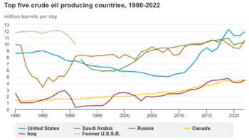 - ^ Borenstein, Seth (October 20, 2023). "US oil production hits all-time high, conflicting with efforts to cut heat-trapping pollution". Associated Press News.