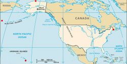 - The geographic center of North America is at 48°10′N 100°10′W / 48.167°N 100.167°W, about 6 ميل (10 km) west of Balta, in Pierce County, North Dakota.[13]